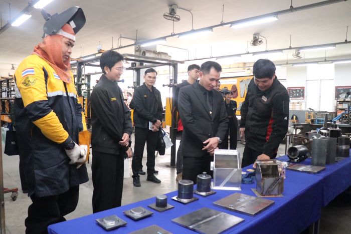 วันที่ 29 ตุลาคม 2568 เวลา 10.00 น. นายสมชาติ สุภารี รองอธิบดีกรมพัฒนาฝีมือแรงงาน นำคณะผู้บริหารกรมฯ ตรวจเยี่ยมและให้กำลังใจเยาวชนทีมชาติไทยที่เข้าร่วมการแข่งขันฝีมือแรงงานเอเชีย ครั้งที่ 3 สาขาเทคโนโลยีงานเชื่อมและสาขาการต่อประกอบมุมไม้ มีผู้ช่วยศาสตราจารย์ ดร. บุญฤทธิ์ แก้วประชุม รองผู้อำนวยการฝ่ายวิชาการ อาจารย์พิชัย ชอบสุข รองผู้อำนวยการฝ่ายกิจการพิเศษและสื่อสารองค์กร อาจารย์ ดร.ชลธิชา นุชพงษ์ รองผู้อำนวยการฝ่ายกิจการนักเรียน อาจารย์วิไลลักษณ์ เทพษร ผู้ช่วยผู้อำนวยการฝ่ายกิจการนักเรียน และอาจารย์ผู้ฝึกสอนทั้ง 2 สาขาให้การต้อนรับและนำเยี่ยมชม ณ โรงเรียนเตรียมวิศวกรรมศาสตร์ ไทย - เยอรมัน มหาวิทยาลัยเทคโนโลยีพระจอมเกล้าพระนครเหนือ