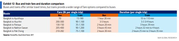 นอกจากนี้ จำนวน การเดินรถต่อระยะทาง (trip per km) และ จำนวนผู้โดยสารต่อประชากร (trip per capita) ของไทย ยังต่ำกว่าประเทศอื่นอย่างมาก เช่น ญี่ปุ่น จีน อินเดีย และประเทศในยุโรป ซึ่งใช้รถไฟเป็นระบบหลักในการเดินทางระหว่างเมืองและขนส่งสินค้า ตัวเลขเหล่านี้สะท้อนว่าระบบรางของไทยยังไม่ถูกใช้เต็มศักยภาพ และยังมีพื้นที่อีกมากสำหรับการพัฒนาในอนาคต