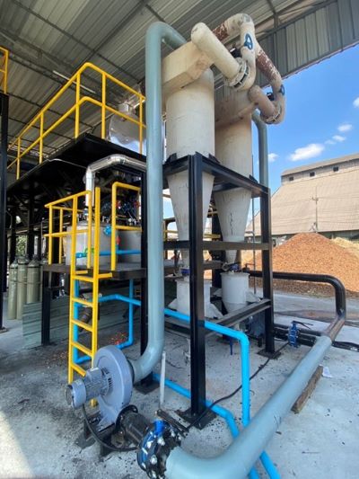 ระบบปฏิกรณ์ผลิตไบโอชาร์จากของเหลือทางการเกษตร เป็นเตาเผาชีวมวลที่ออกแบบกระบวนการเฉพาะด้วยเทคโนโลยี Dry Torrefaction (การเผาแห้งอุณหภูมิต่ำ) และ Pyrolysis (การเผาแบบไร้อากาศ) ที่นาโนเทคพัฒนาขึ้นโดยการผสานองค์ความรู้ด้านเคมีชีวภาพ และการออกแบบเชิงวิศวกรรมขนาดใหญ่ ทำให้นวัตกรรมนี้มีความแตกต่างจากระบบเผาชีวมวลแบบเดิม โดยกระบวนการนี้ควบคุมอุณหภูมิระหว่าง 300-600 องศาเซลเซียส ภายใต้สภาวะออกซิเจนต่ำ เพื่อผลลัพธ์เป็นไบโอชาร์ ที่มีค่าความชื้นต่ำ องค์ประกอบคาร์บอนสูง และที่ให้ค่าความร้อนสูง หรือสามารถออกแบบให้ได้ไบโอชาร์ (Biochar) ที่มีโครงสร้างระดับนาโน ที่พร้อมสำหรับต่อยอดโดยใช้นาโนเทคโนโลยีเพื่อให้ได้วัสดุคาร์บอนที่เหมาะสำหรับการปรับปรุงดิน การบำบัดน้ำ วัสดุก่อสร้างสีเขียว หรือการดักจับคาร์บอน และอื่น ๆ